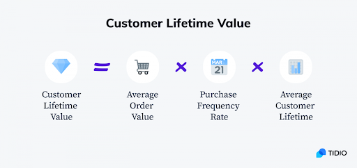 Average Order Value ($18) x Purchase Frequency Rate (1 time per month) x Average Customer Lifetime (12 months) = $216
